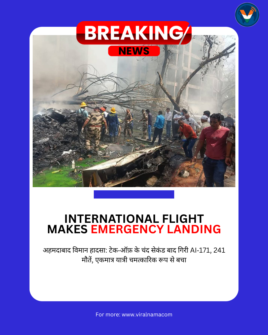 • अहमदाबाद विमान हादसा: टेक‑ऑफ़ के चंद सेकंड बाद गिरी AI‑171, 241 मौतें, एकमात्र यात्री चमत्कारिक रूप से बचा